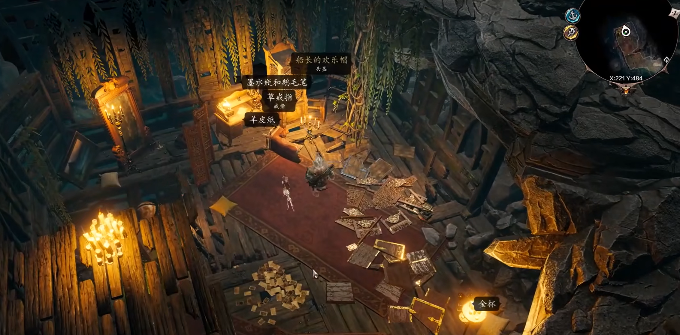 3.位于冰龙营地的正北方,有一处洞穴[船长的隐匿处],进入后与其中魔法门对话,选择日记内容:”愿巨浪带走吾等“,门会解锁,船长的帽子就在房间中,拿走帽子触发与船长的战斗